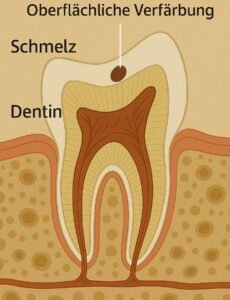 Intrinsische Verfärbungen: sind Verfärbungen, die im Inneren des Zahns liegen.